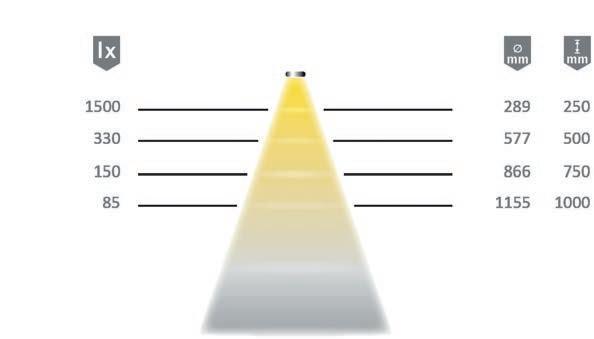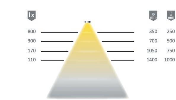 If you are searching for functional lighting with a certain level of illumination, you can easily see whether the chosen product has the right degree of brightness by reading the Lux values on the lighting diagram. This also allows you to compare different lights. The luminous flux, or light output of a lamp, does not provide any information on these values. It is suitable only for selecting a light in systems where these are replaceable.