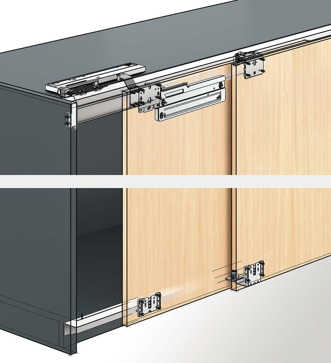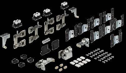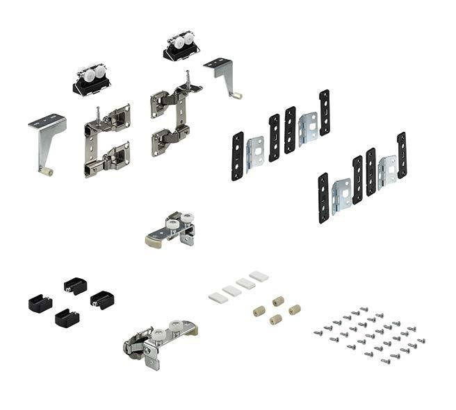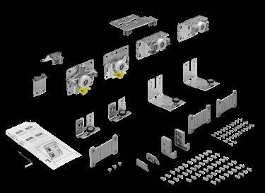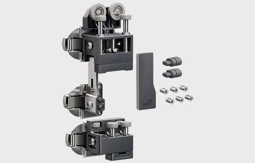 Set comprises all soft closing elements for 2 or 3-door sliding door cabinets