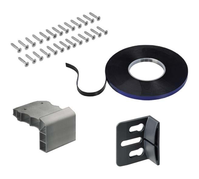 Set contains 9 clips for attaching runner profile and 12 clips for attaching guide profile