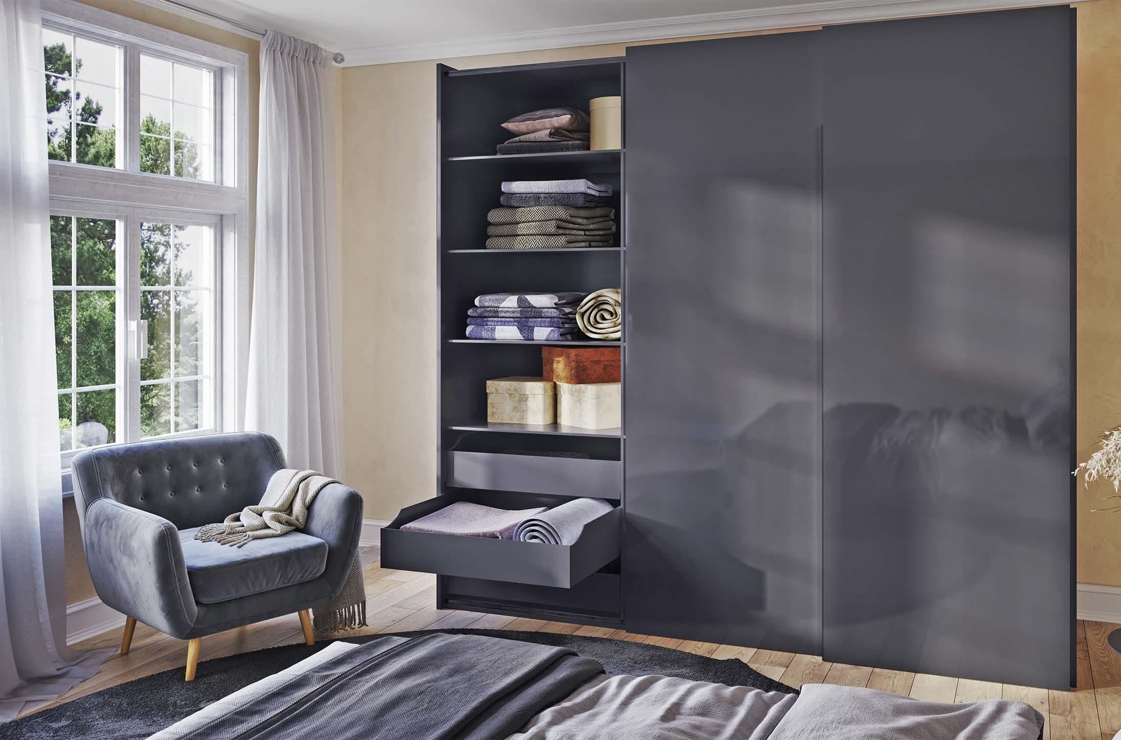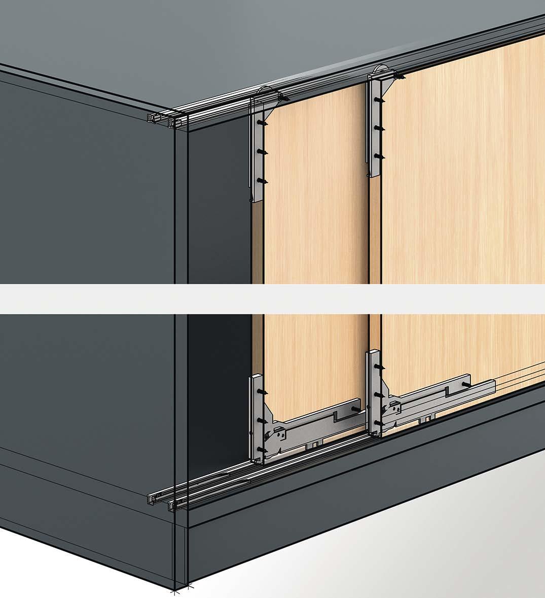 new experience in practical convenience. The whole picture is completed by straightforward, time saving door installation with stacked runners that clip on without the need for tools.