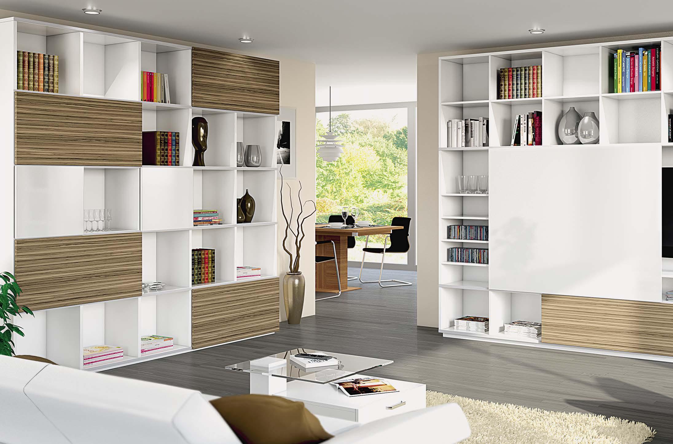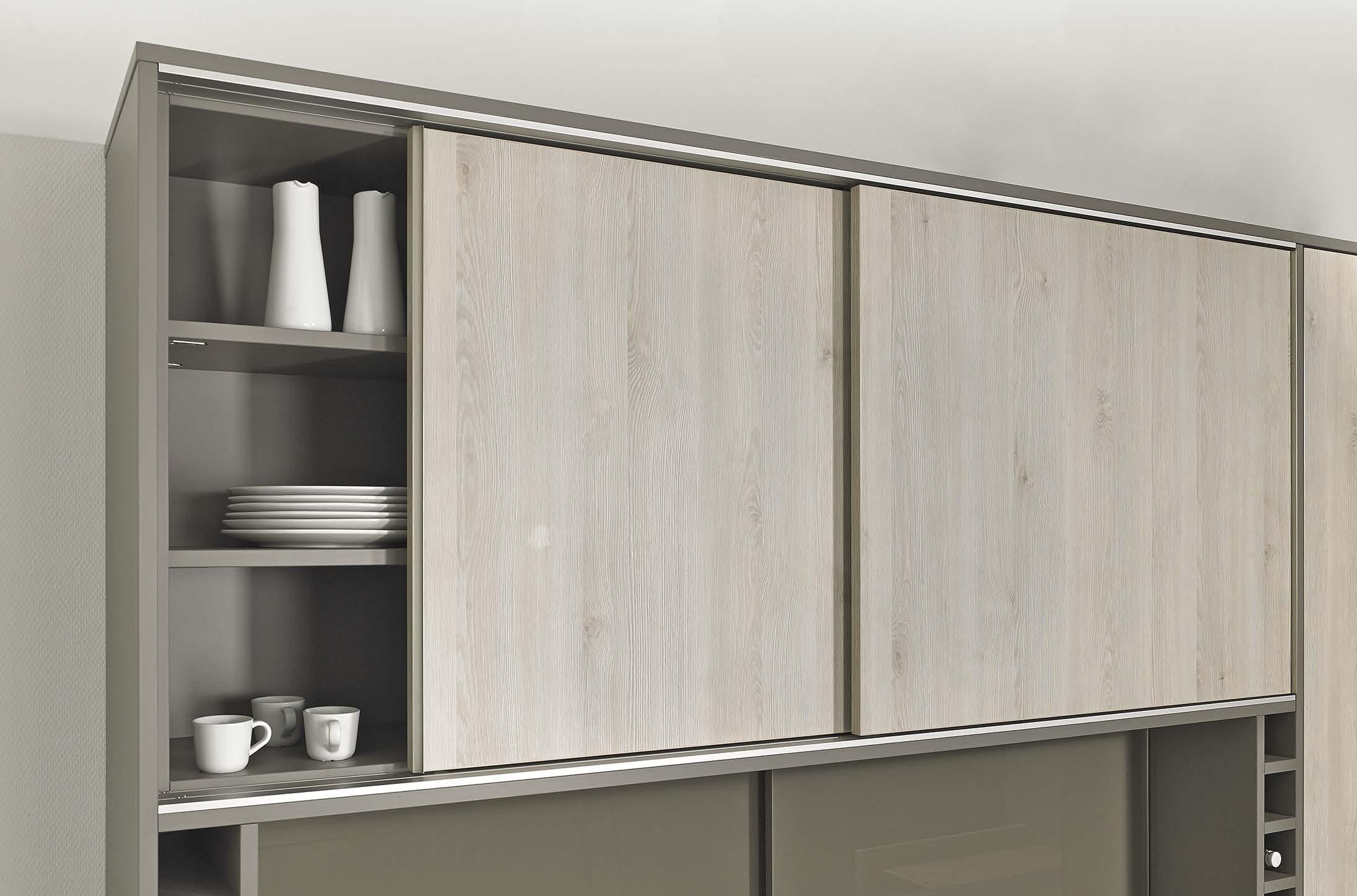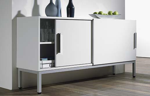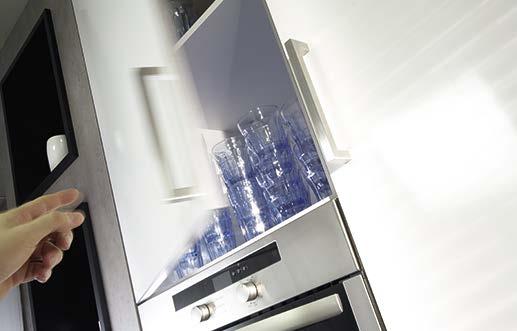SlideLine M upgrades the practical value and design of furniture. Living room storage units and shelf systems, kitchen wall units as well as bathroom furniture and office cabinets. The versatile system is suitable for all common furniture constructions with wooden or glass doors.