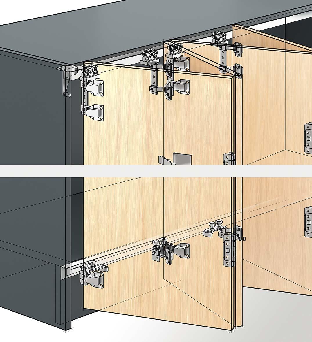 Floor to ceiling, large format sliding door units make statements and provide visual clarity in a room. The new TopLine XL sliding door fitting from Hettich is the key to creating cabinets with a focus on exquisite design.