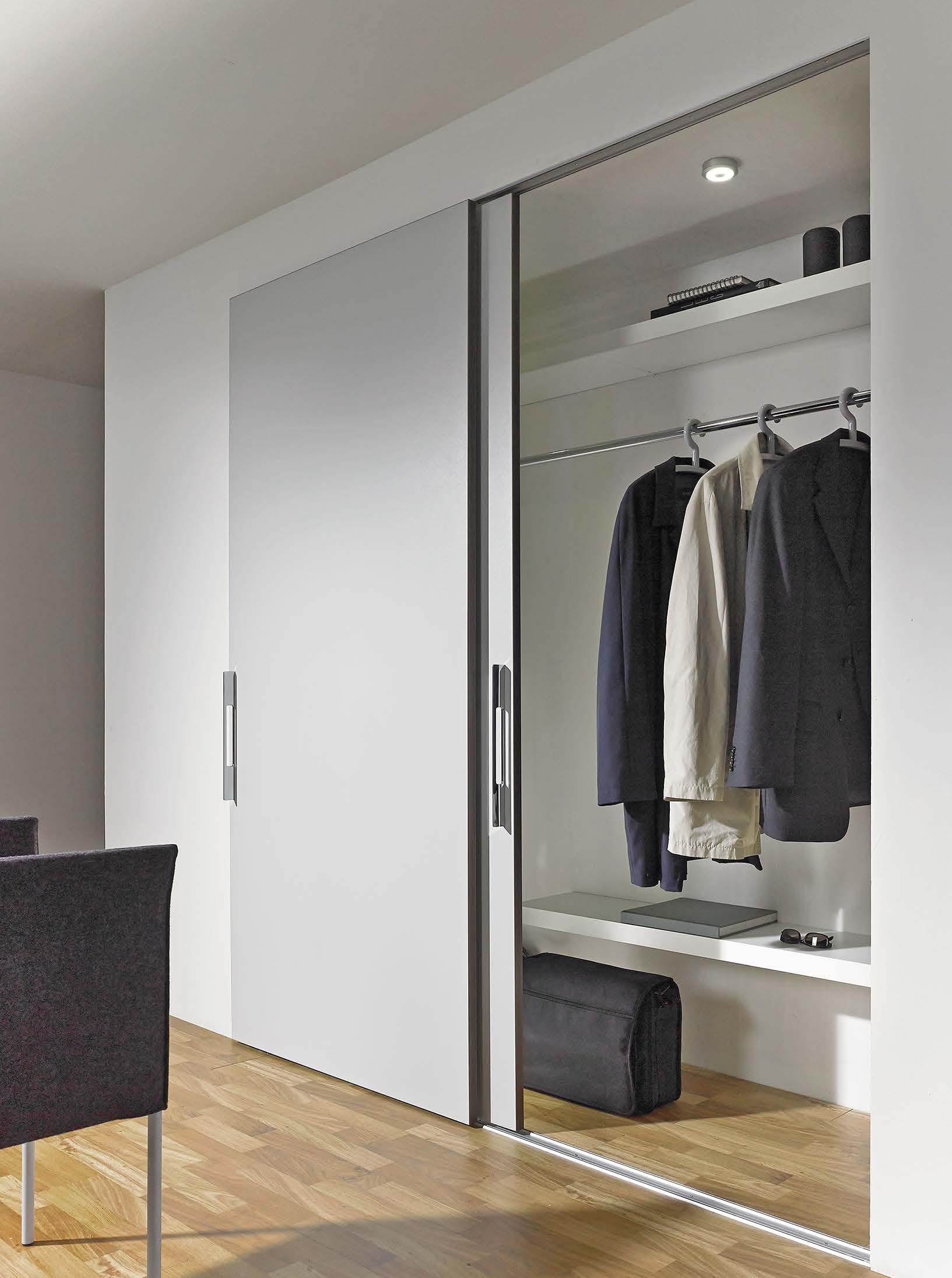 TopLine L lets you create sliding doors in a new dimension: fascinatingly easy to open and close and first class Silent System performance. Even heavy doors run with incredible ease, almost appearing to float. Fitted with TopLine L, sliding door cabinets and wardrobes provide a fascinatingly