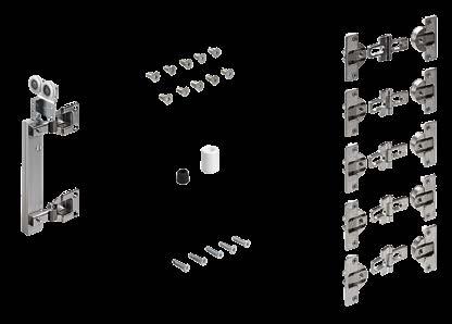 Set comprises all soft opening elements for 2 or 3-door sliding door cabinets