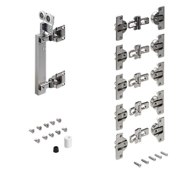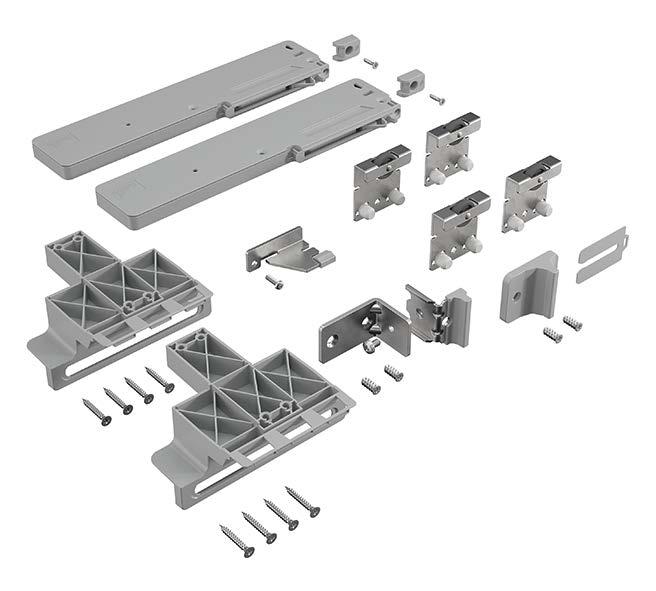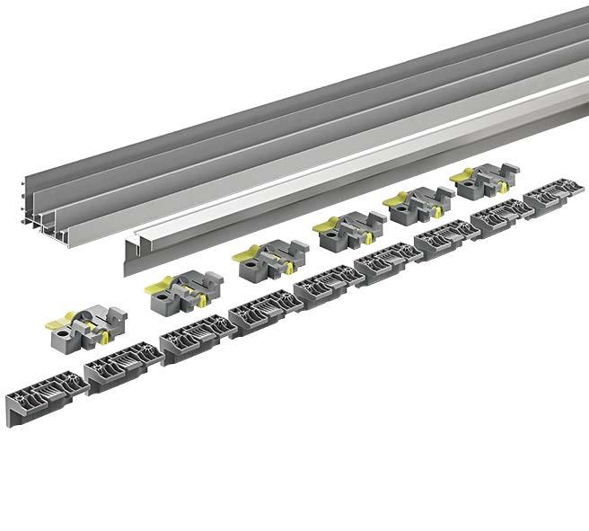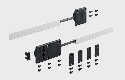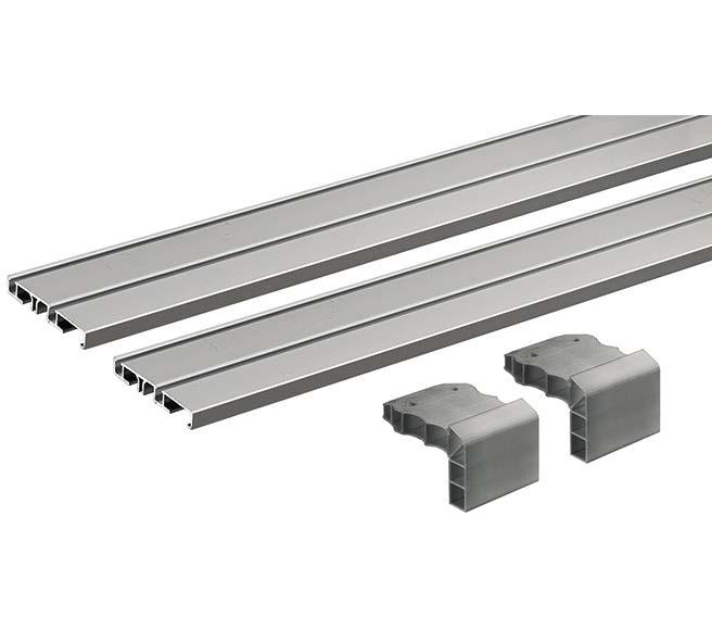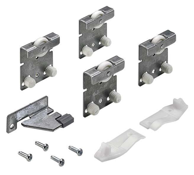 Set contains all running and guide components for 2 / 3 / 4-door sliding door cabinets and wardrobes