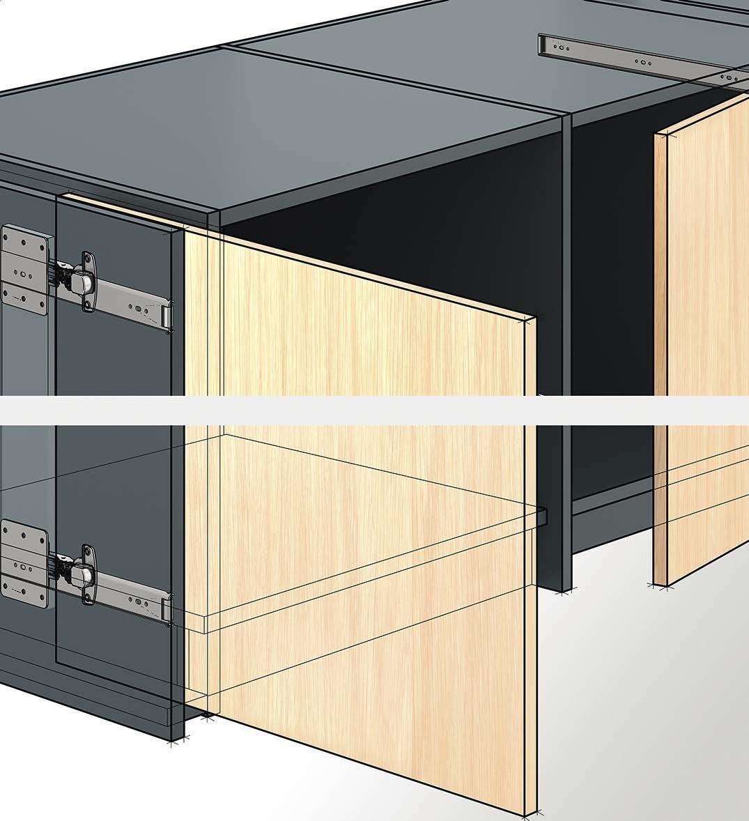 The fitting situations shown in this catalogue are only intended to illustrate the possible options. The furniture manufacturer is responsible for ensuring that furniture is designed in compliance with standards, in particular with regard to meeting the requirements on safety.