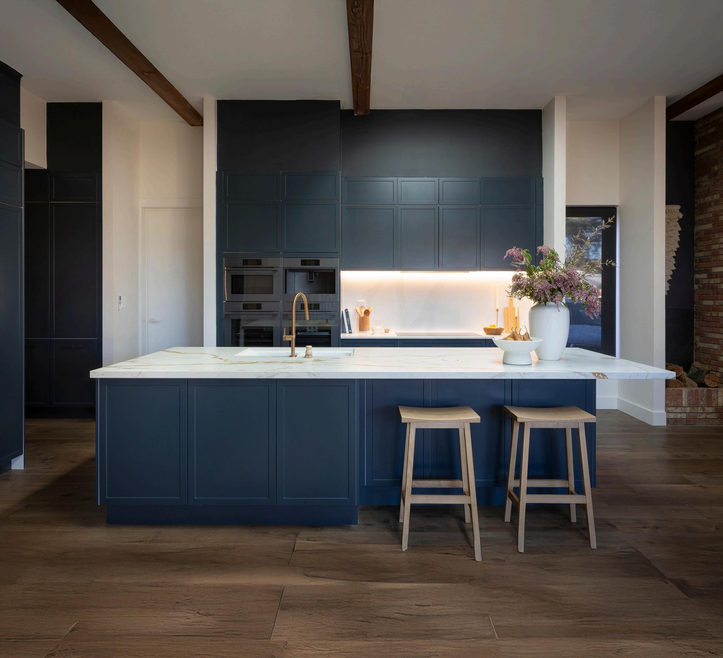 Han and Can’s kitchen design is a modernandelegantspacedefinedby soft curves and a refined material palette that flows seamlessly through theirhome.