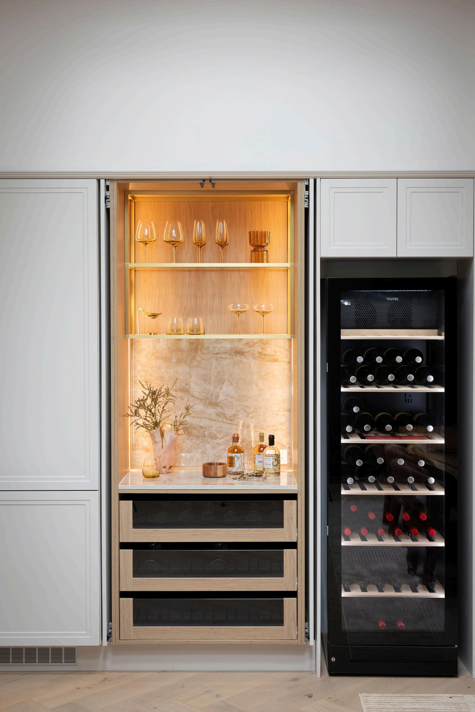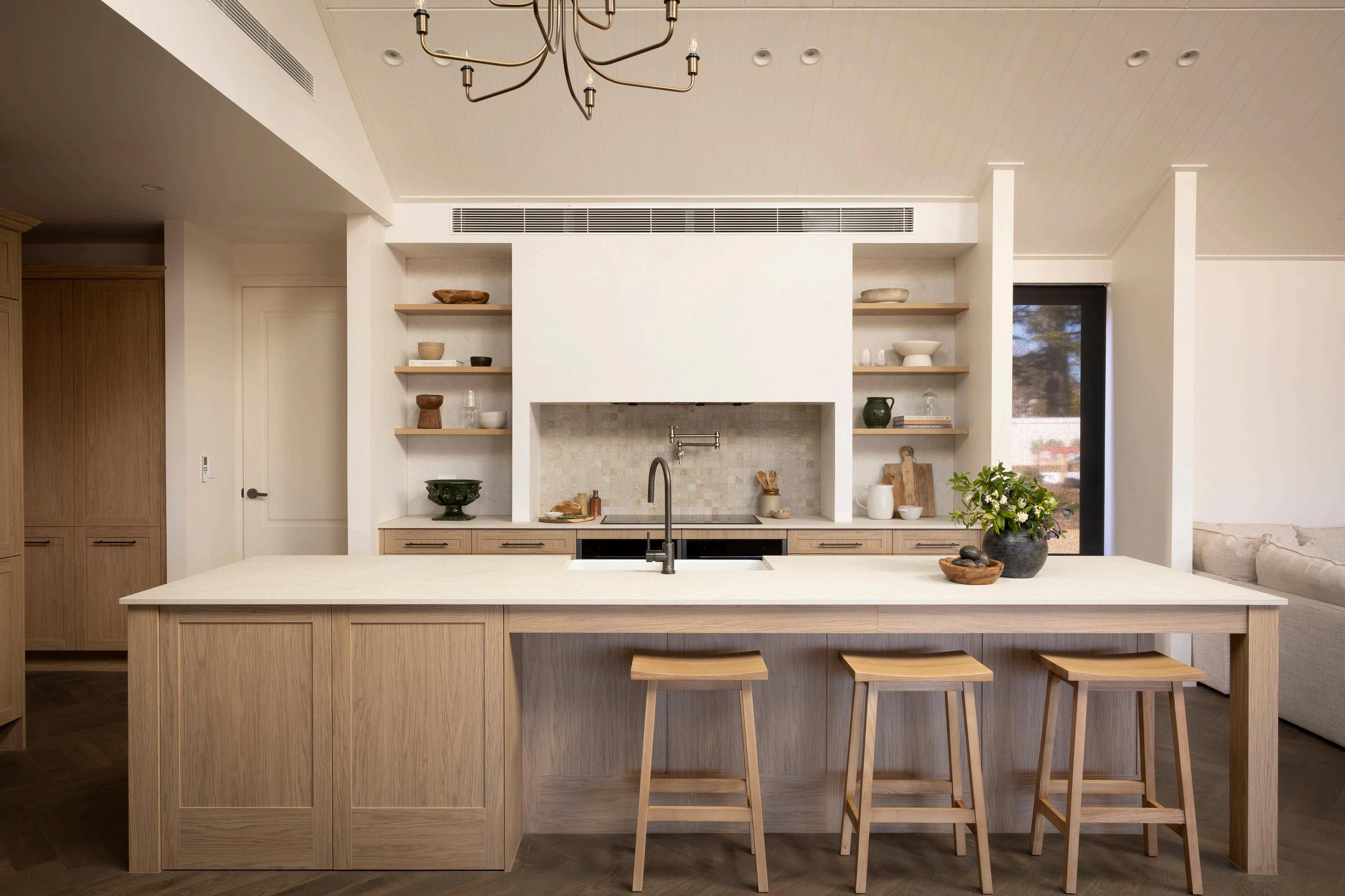 functionalspacewith generousstorage,while thecolourpaletteof naturaltexturesand refinedfinishescreatesa warmandgrounded feel