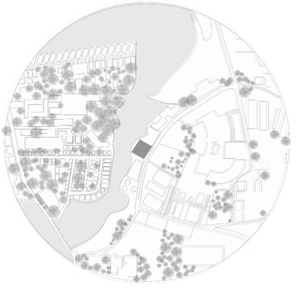 Parkingatthelowerlevelandaccessthrough rampwithmultiplesmallpocketstositbeside waterbody