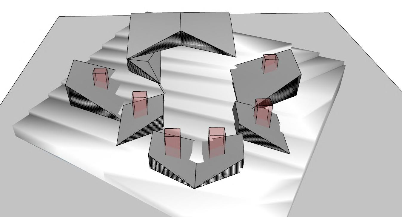 Conceptofmassingwastoconnecteveryblockthroughbridgesandorientblockaccordingclimate tocapturenaturallightinallhouse.Similaryheightisalsodecreasedtotheendpointtogettheview oflakenearbyandalltheterracesstayedconnetedvisually.Betweeneachfloorthereisspacewhich actsasbreathingspaceandalsigatheringspacebetween2houses.Aspeoplewithparticular communityaremorecomfortablewithsuchopenpockets/spaces.