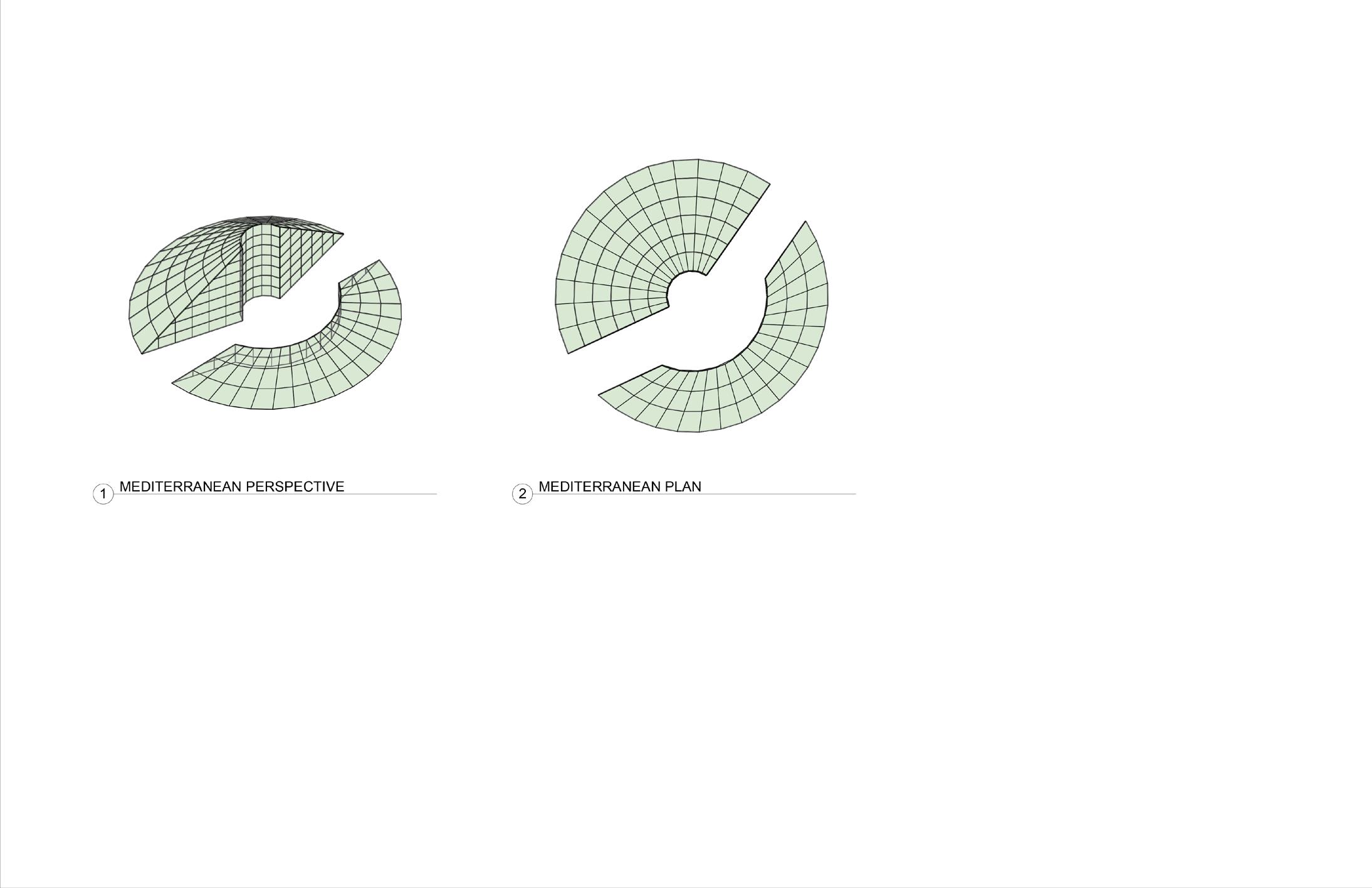 The final expansion piece is the Mediterranean shrubland, which features a diverse collection of plants from dry, coastal areas. The roof’s geometry resembles the existing conical shapes, but it is fragmented to accommodate an existing pathway passing through it.