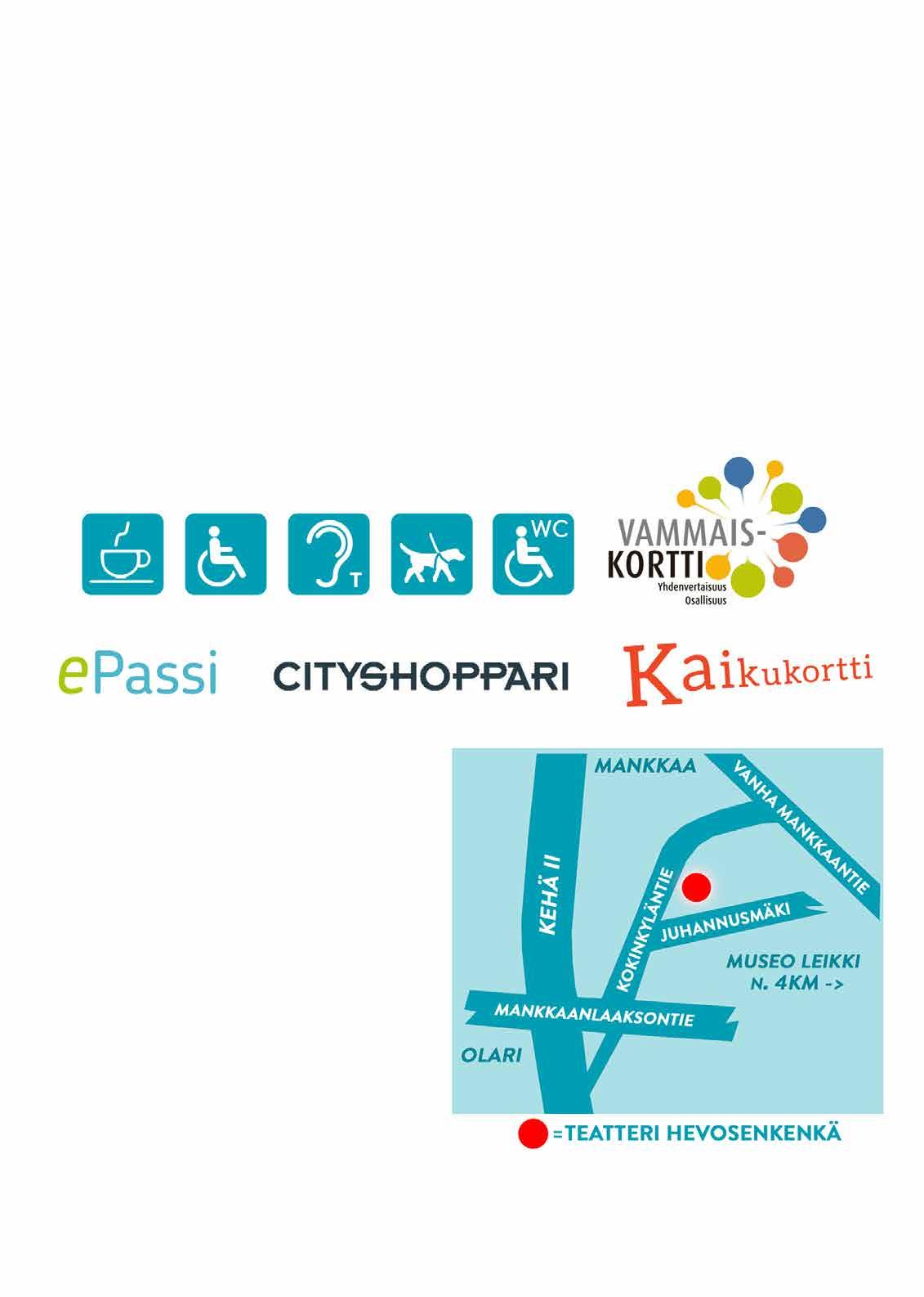 Tiedustelut ja lippuvaraukset: Teatteri Hevosenkengän toimistosta arkisin klo 8.00 – 16.00, 09 4391 220, hevosenkenka@hevosenkenka.fi hevosenkenka.fi tai lippu.fi.
