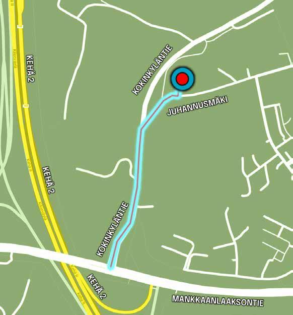 “Paras reitti Teatteri Hevosenkenkään Kokinkyläntieltä Juhannusmäelle. Karttasovellukset voivat antaa heikomman reitin.”