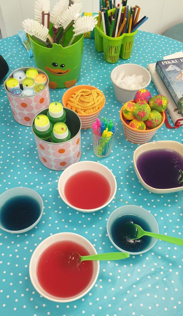 Koko perheen värikylpytyöpaja kokoontuu kertaluontoisesti. Erilaiset virittäytymiset: musiikki, saippuakuplat ja leikit vievät meidät hauskalle yhteiselle matkalle taiteen maailmaan.