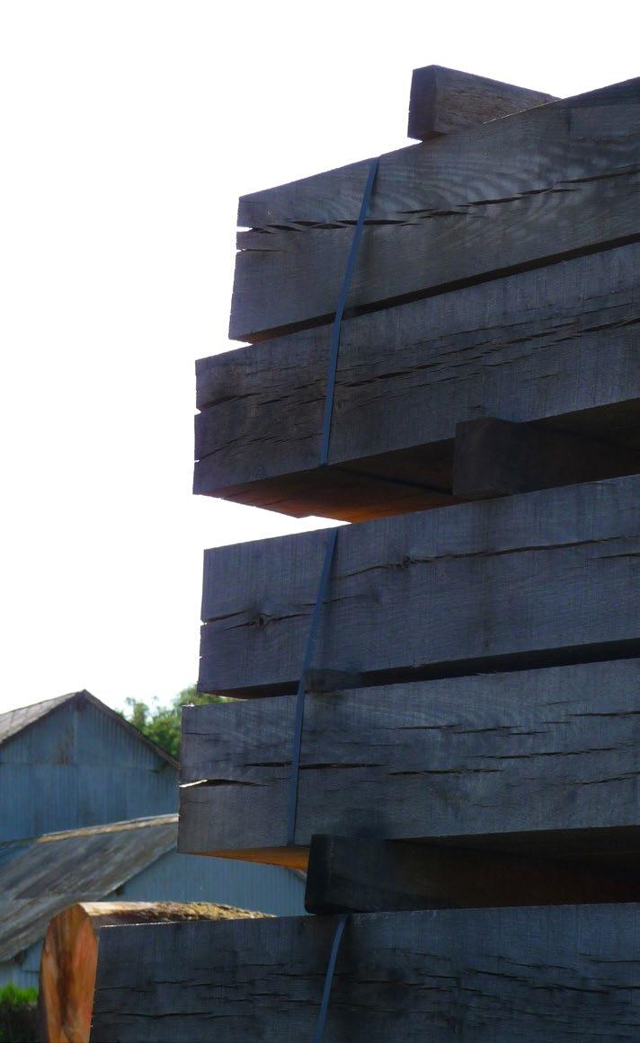 Ideal for applications where movement must be kept to a minimum, but the quality of joinery timber is not required; or where the sections required are too large for a joinery product (150mm+); or where a weathered/ aged look is desired. The beams are air dried in square sections for 1–3 years (on average) and can then be sawn to other sections as required. 75mm is the minimum thickness the beams can be sawn to whilst still maintaining structural soundness. These beams have a rustic appearance which needs to be taken into account when specifying this product.