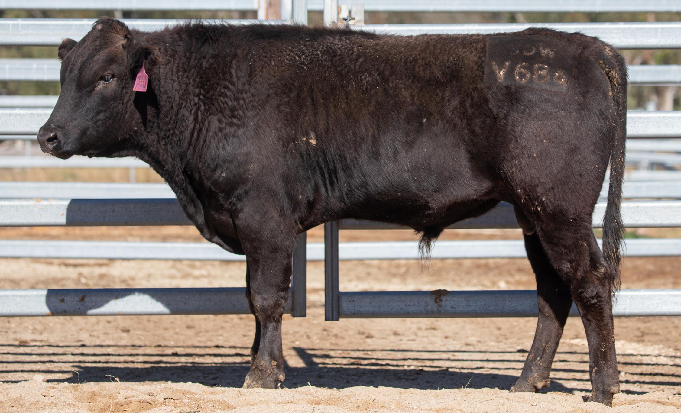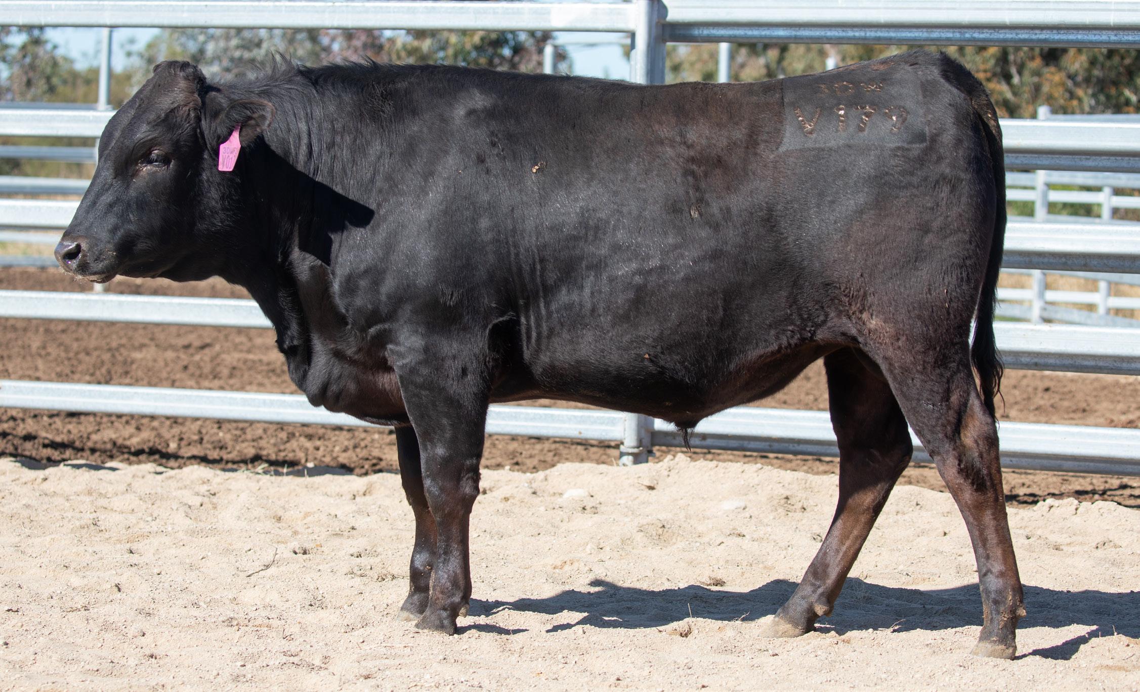 Lot 40 features 3DWF24V0638 - 3D GENETICS V0638 (AI), the most FEED EFFICIENT bull in the sale sired by the breedleading MYMFP0342 - ARUBIAL UNITED P0342 (AI) (ET). In addition to elite FEED EFFICIENCY, he also excels in EMA, MARBLING & MARBLING FINENESS. V0638 has a BreederFeeder Index in the top 1.25 % of the breed at $549; F1 Terminal Index top 0.75 % at $423; marble score well within the top 1 % of the breed of 3.5; marbling fineness in the top 1 % of the breed at 0.67; EMA of 10.7 cm2 and a carcase weight above breed average. An extremely complete genetic package. Dam 3DWFS0550 - 3D GENETICS S0550 whose sire 3DWFQ0093 is presently the highest proven marbling sire in the 3D Genetics program delivering progeny marbling 2.6 AUSMEAT marble scores above breed average benchmarks. Scrotal Circumference 28.5 cm (29/06/2025)