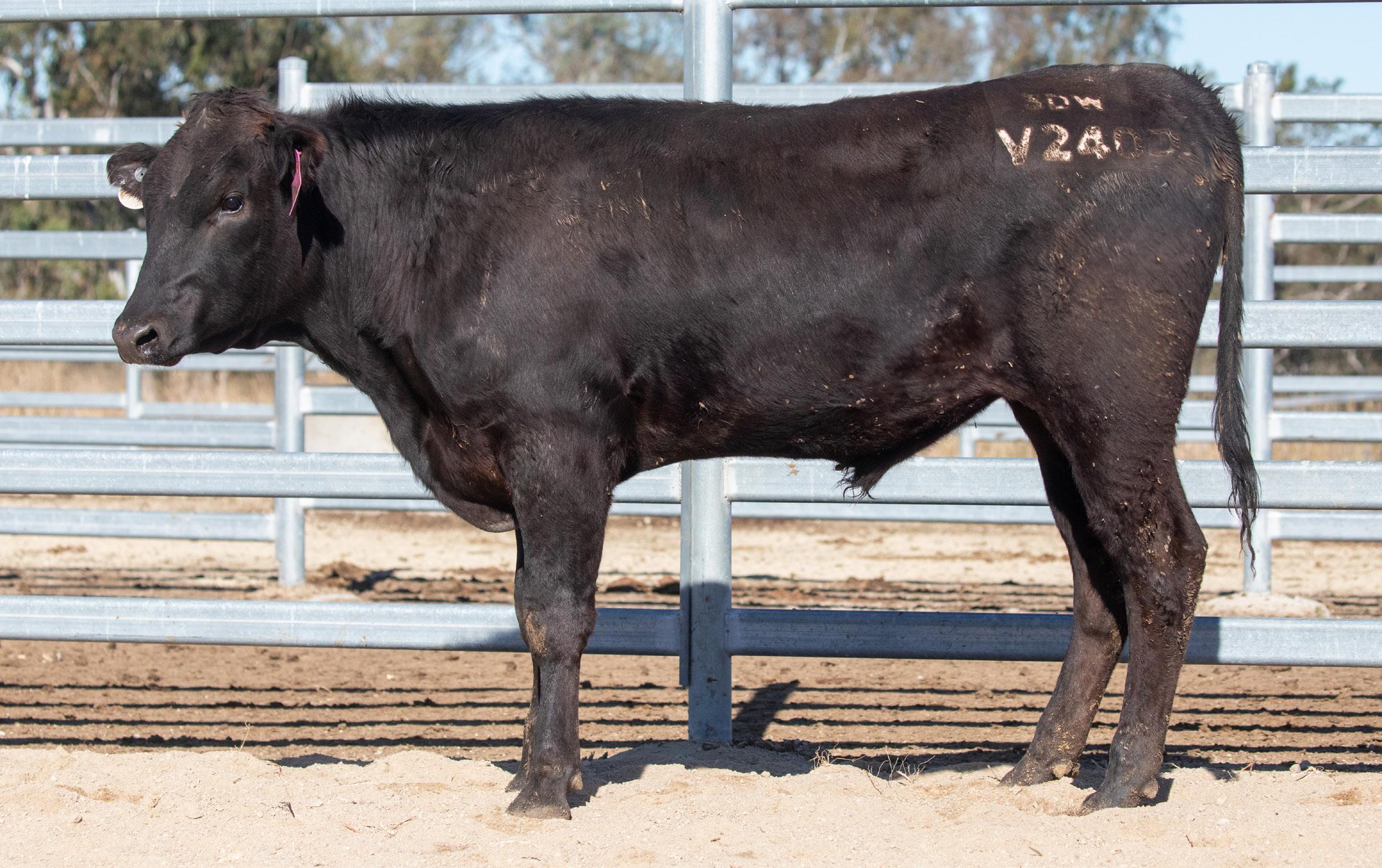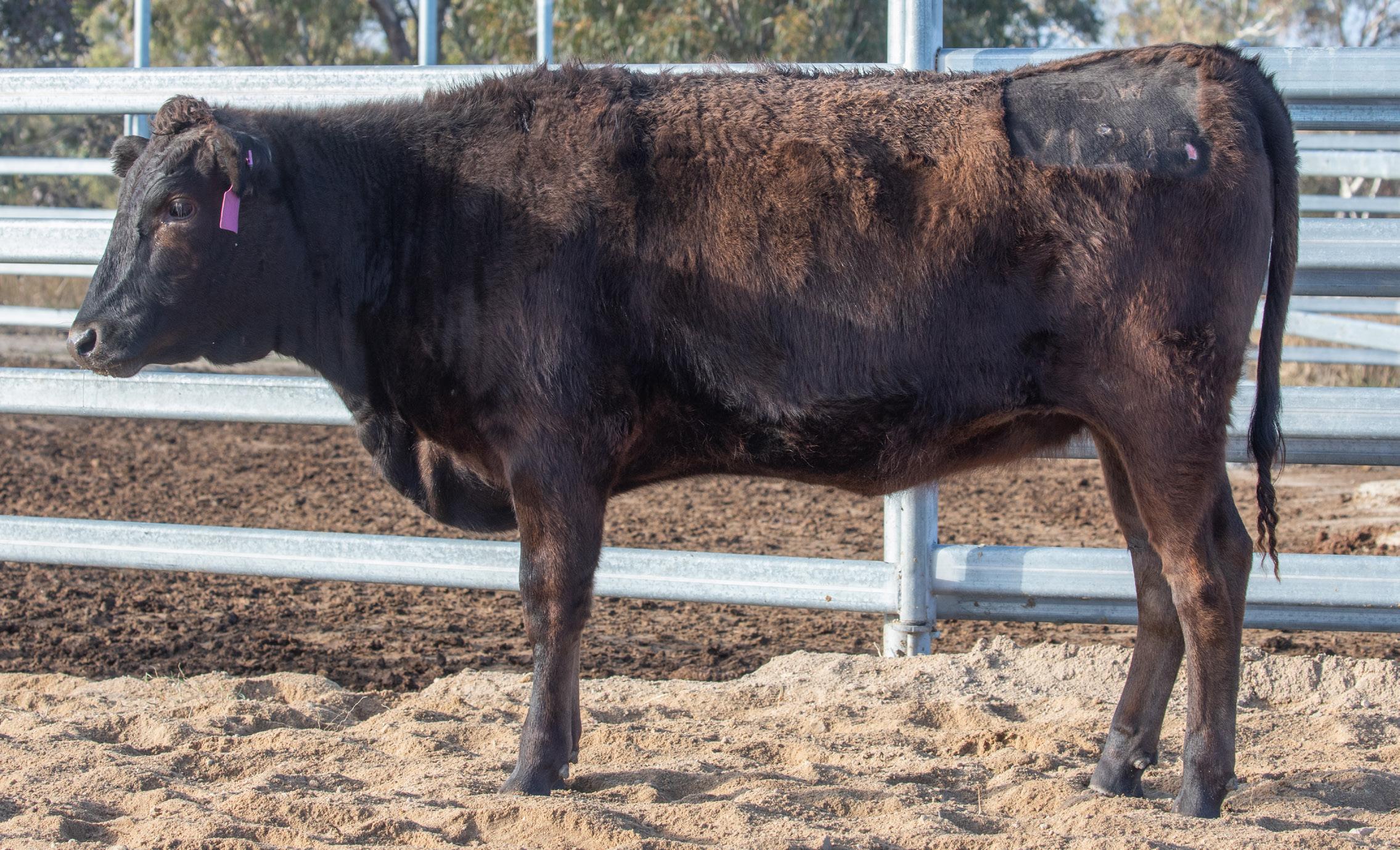 3DWF24V0161 is showing good growth and weighed 420 kg at 400 days of age. Dam 3DWFQ0160 - 3D GENETICS Q0160 (AI) (ET). Scrotal Circumference