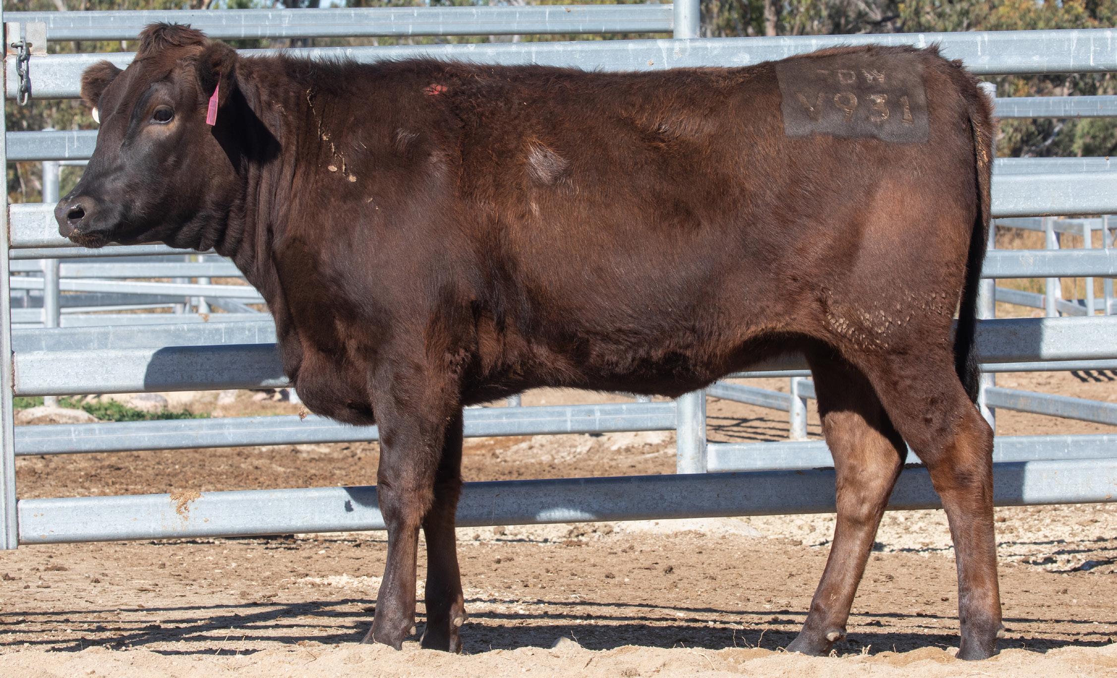 Presenting Lot 6 : 3DWF24V0703 - 3D GENETICS V0703 (AI), a heifer, sired by the breed-leading upand-coming IRONGATE SUNITOSHIGE S332 (AI), brings Breeder-Feeder Index top 1.75 % at $538; F1 Terminal Index top 2 % at $377; marble score in the top 2 % of the breed of 3.0; marble fineness top 3 % at 0.53; Ideal for producers chasing both marbling and carcase weight.