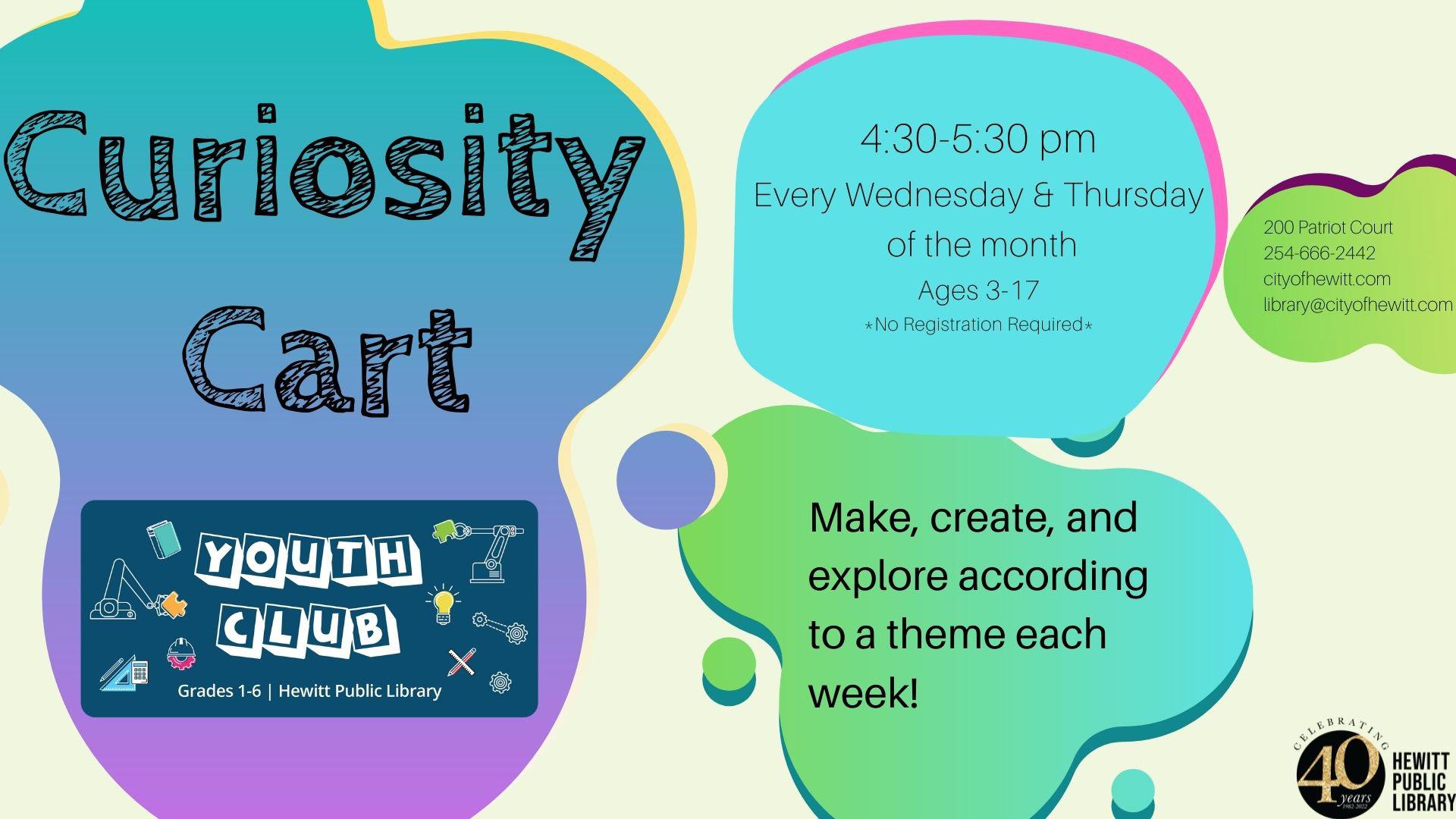 Do you want to help design teen programs at the library? Are you looking for leadership opportunities? Do you want your voice to be heard? Then join the Teen Advisory Board! You can request an application or more information. Third Tuesday of the month from 5-6pm. Ages 13-18 welcome