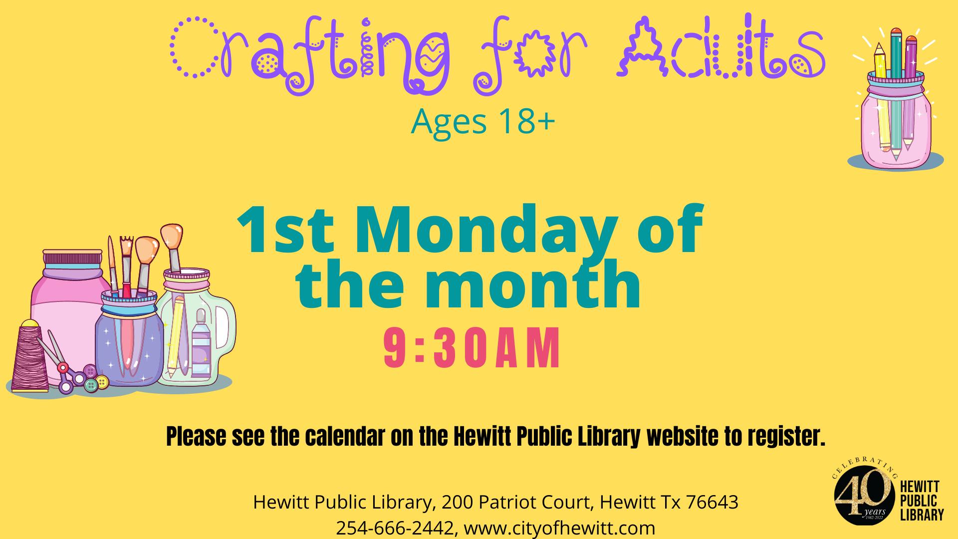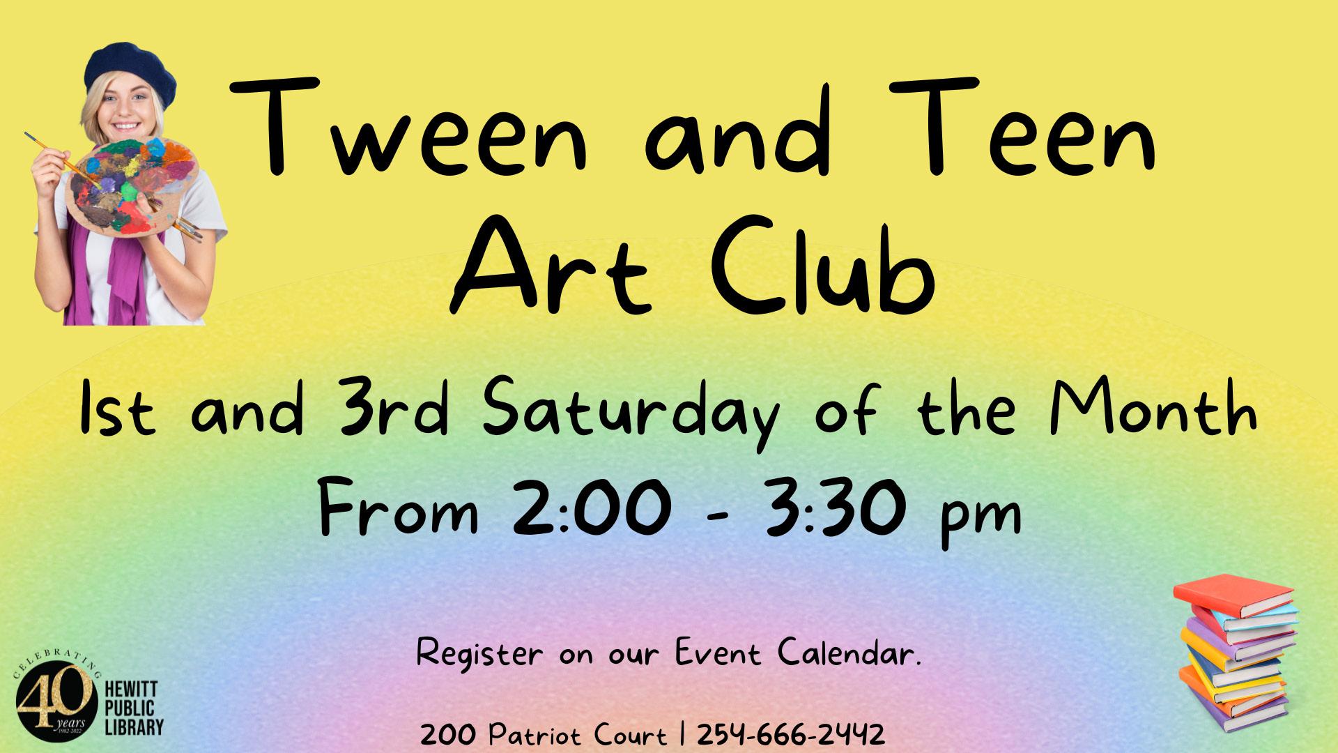 Do you love arts and crafts? Join the Tween and Teen Art Club to practice your creativity and take home an art project! First and Third Saturday of the month from 2:00-3:30pm. This is a come-and-go program. Ages 10-18 welcome.