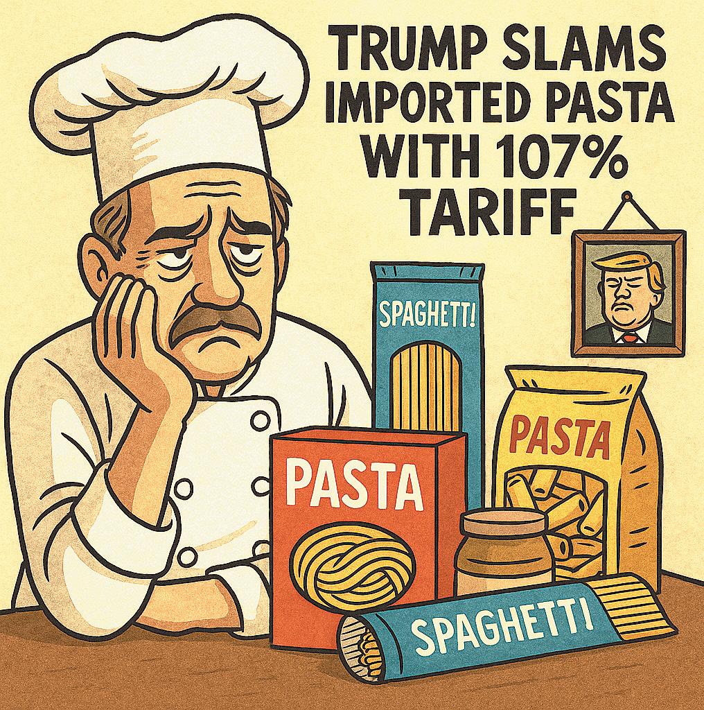 “Trump put 107% tariff on imported pasta. Apparently, the next great danger to ~LCCN Publisher