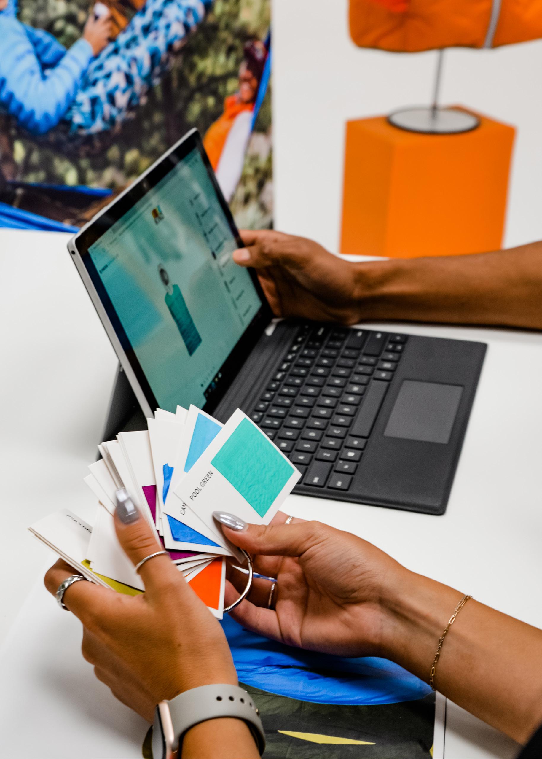 Jump online and fill out our quick and easy virtual request form. You can simply send us your logo(s), branding and URL. We’ll send you a presentation full of custom designs that are on-brand and created to inspire. All within 2 business days.