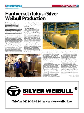 övrig produktion när det gäller kvalitet och hantverk. – Målsättningen för detta projekt är att vi även i framtiden ska upprätthålla monteringsarbeten på samma nivå. Antingen blir det en fortsättning för samma kund, vilket vore det ultimata, men annars får vi söka nya monteringsprojekt, vilket vi även idag gärna öppnar dörrarna för, säger Nicklas Olsson. Möjligheterna för andra företag att utveckla sina produkter och själva utvecklas genom Silver Weibulls effektiva tillverkning är något alla på företaget gärna är öppna för. Det man genast slås av när man vandrar genom lokalerna och pratar med olika personer i företaget är den stolthet som finns för arbetet man levererar och öppenheten inför nya utmaningar. Research: Per Svensson Text: Örjan Persson