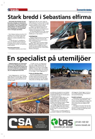 byggföretag för vilka man verkar i rollen som underentreprenör. Ett av dem är GIAB Concept, ett annat är Swisslog i Tranås för vilka man utför många nyinstallationer på deras maskiner. – Faktum är att jag representerar dem över hela världen, säger Sebastian Andersson och berättar att det även blir en hel del arbetsinsatser i samband med nyproduktion av villor. För närvarande jobbar han på en villa i Tranås och en annan i Aneby. Ett annat projekt rör ett fritidshus på en ö i sjön Sommen. Ljudanläggningar Sebastian Andersson har även ett stort intresse för ljudteknik, vilket gör att han även utför dylika installationer inom ramen för verksamheten i CSA Installation AB. – Jag installerar, servar och reparerar ljudanläggningar i olika miljöer, bland annat i Eksjö där jag installerade en anläggning i en gymnastiksal. En annan installation utförde jag på gymmet Black Bull Fitness här i Tranås, berättar Sebastian avslutningsvis.