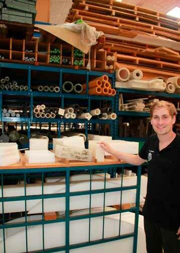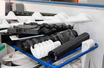 Skräddarsydda lösningar Jeppe Sund Nielsen visar runt i den ändamålsenliga anläggningen och presen terar hela den noggranna tillverknings processen. Beställarna kan välja flexibla slangar med en diameter från 30 till 1 000 millimeter och i längder på upp till tio meter. Kunden kan antingen kapa slangen i önskad längd eller låta Vally-Matic leverera de längder som önskas. Tillverk ningen sker i bland annat PVC, PE, PP eller TPE.