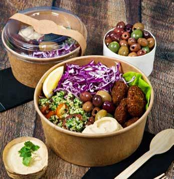 använder engångsprodukter, exempelvis uppläggningsfat, tallrikar, bestick och liknande. Storsäljaren är muggar och sugrör. Eftersom muggarna är tillverkade av palmblad kan de kastas med matav fallet, berättar Rikke.
