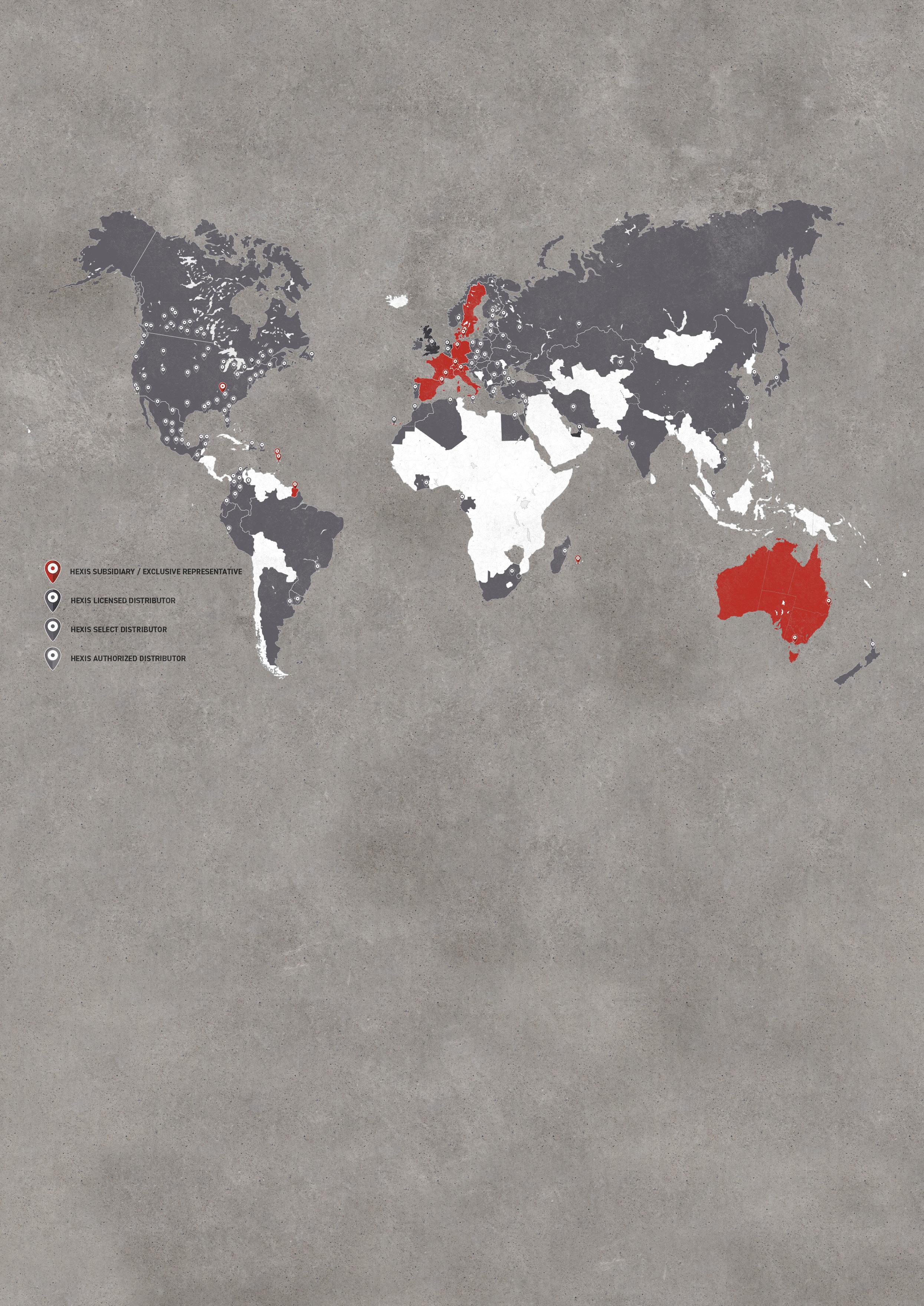 Die Farben sind im Katalog nur zur Information und ohne Gewähr angegeben. Bei Ihrem HEXIS® Ansprechpartner erhalten Sie die entsprechenden Farbkarten. Farbkarten erhalten Sie gerne auf Anfrage unter folgender Adresse: info@hexisgroup.com
