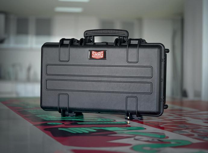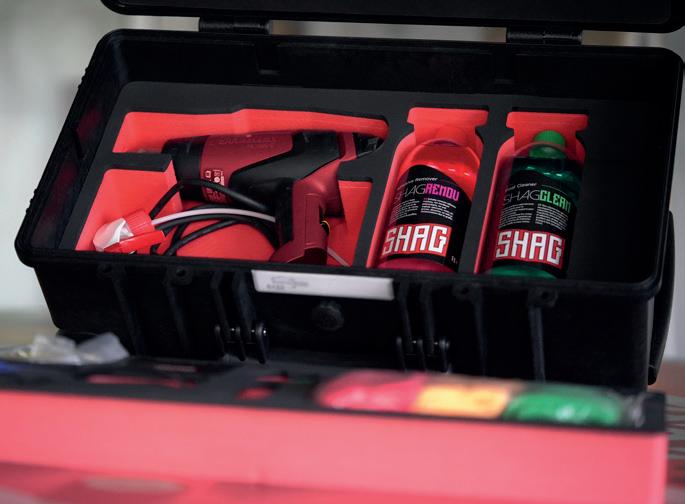 Malette d’accessoires pour la pose composée de : SHAGGUN, PISTLASERS3, FRENCHBOX, SHAGKNIFE, LAMOLFA30, EASYSEAL, MFKIT, FEUTROUGE1, SHAGCLEAN, SHAGREMOV, DMTRUBFR, GANTSCOV et SHAGLINE