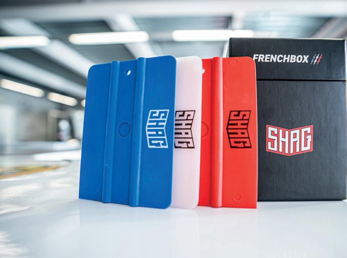 SHAG vous offre la palette d’outils indispensable pour la pose de vinyles, de films solaires, de films de protection : raclette, liquide nettoyant, cutter, spray, stylo perce-bulles, gant, …
