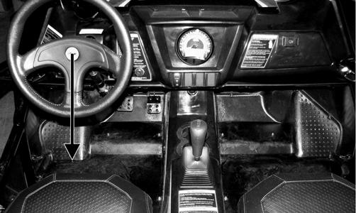 1.Remove the seats; then remove the battery cover and shift lever handle. 2.Remove the center console leaving the shift lever boot in the console. 3.Remove the nut from the shift cable pivot bolt; then remove the four machine screws from the shift lever axle mounting and remove the shift lever.