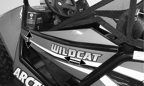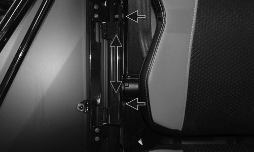 CHECKING/ADJUSTING (Wildcat/X/4X) The doors and latches are adjustable for proper latching/ unlatching. 1.To raise or lower door-to-latch contact or to move the door forward or backward, loosen the screws on the hinge plate. After adjustment, tighten securely.