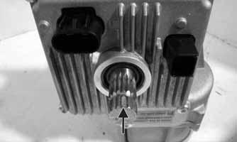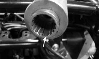 2.Mark the ends of the EPS input and output shafts to correspond with the flat-splined segment; then align the flatsplined segment of the output shaft with the slot in the rack input coupler and install the EPS into the vehicle.