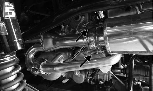 INSTALLING MUFFLER 1.With the grafoil seal in place, place the muffler onto the holder pins and slide into position. 2.Secure the muffler to the exhaust pipe with the four exhaust springs.