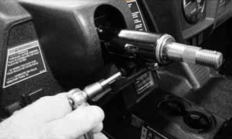 REMOVING 1.Remove the steering wheel. 2.Remove the hood and grille. 3.Remove the upper pivot bolt on the steering tilt link and drop the tilt link down clear of the dash.