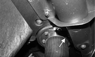 8.Install the flex-shaft clamp bracket and four cap screws loosely installed; then install the U-clamp and secure with two lock-nuts. Tighten the U-clamp lock nuts to 7 ft-lb and the lower bracket cap screws to 20 ft-lb. 9.Install the upper steering flex-shaft hold-down strap and tighten the cap screw to 50 in.-lb.