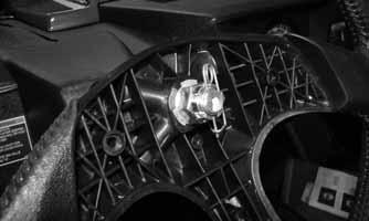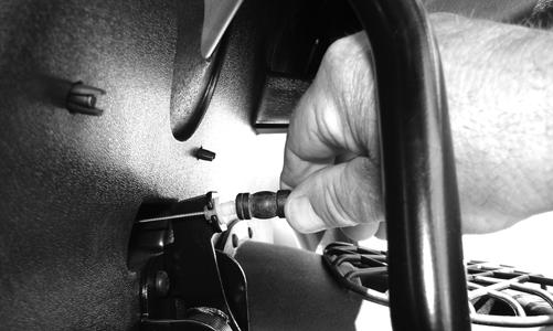 INSTALLING Align the mounting holes with the holes in the splash panel and secure with the two torx-head screws and nuts; then snap the throttle cable holding grommet into the actuator arm.