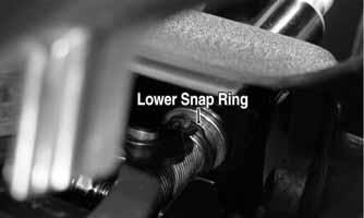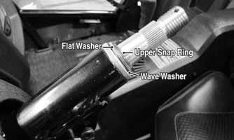 7.Remove the upper and lower snap rings from steering shaft; then work the steering shaft out of the upper steering support housing and remove from the vehicle.