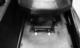 2.To install a front seat, slide the front of the seat into the seat retainers and push down firmly on the rear of seat. The seat should automatically lock into position. 3.To remove a rear seat, remove two cap screws securing the seat support to the floor; then remove the seat.