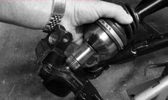 2.Install the knuckle to the lower ball joint and secure with a new “patch-lock” cap screw. Tighten to 35 ftlb. 3.Slide the axle into the knuckle; then install the upper ball joint and secure with a new “patch-lock” cap screw. Tighten to 35 ft-lb.