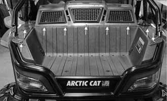1.Remove the rear body panel. 2.Remove the six fender screws (two under rear body panel) securing the cargo box to the mounts and remove the cargo box.