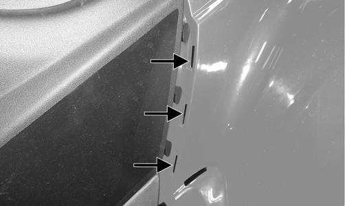 4.Install the mud guards and secure to the fenders and foot rest supports with the existing hardware. Make sure all locating tabs are appropriately engaged with the fenders and side panels.