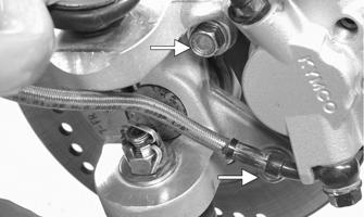 3.Remove the nut securing the hub. 4.Remove the cap screws securing the brake caliper; then remove the caliper and lay aside.