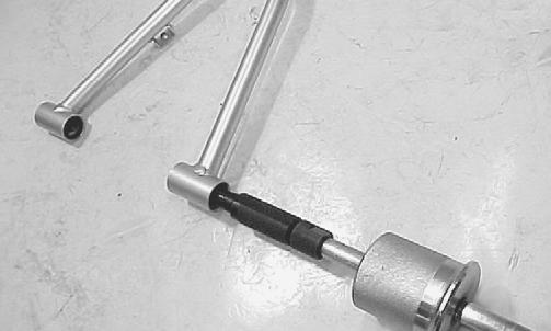 5.Check the bearings for excessive wear and replace them if worn. 6.Using a suitable bearing remover, remove the pivot bearings; then clean all parts in parts-cleaning solvent.