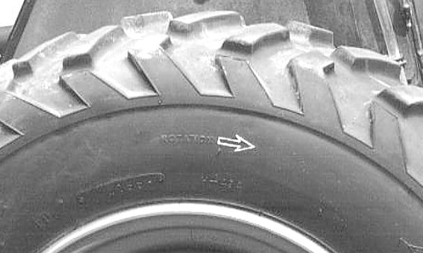NOTE: Make sure each wheel is installed on its proper hub as noted in removing (the “rotation arrow” must indicate forward direction of rotation).