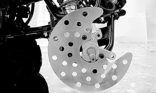 3.Remove the nut securing the hub. 4.Remove the cap screws securing the brake caliper; then remove the caliper and lay aside.