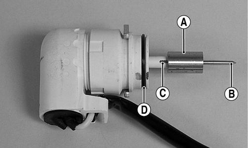 INSPECTING/TESTING 1.Inspect the plunger (A) for scoring or scratches, the needle (B) for damage to the tip, the spring (C) for breakage, and the O-ring (D) for breaks.